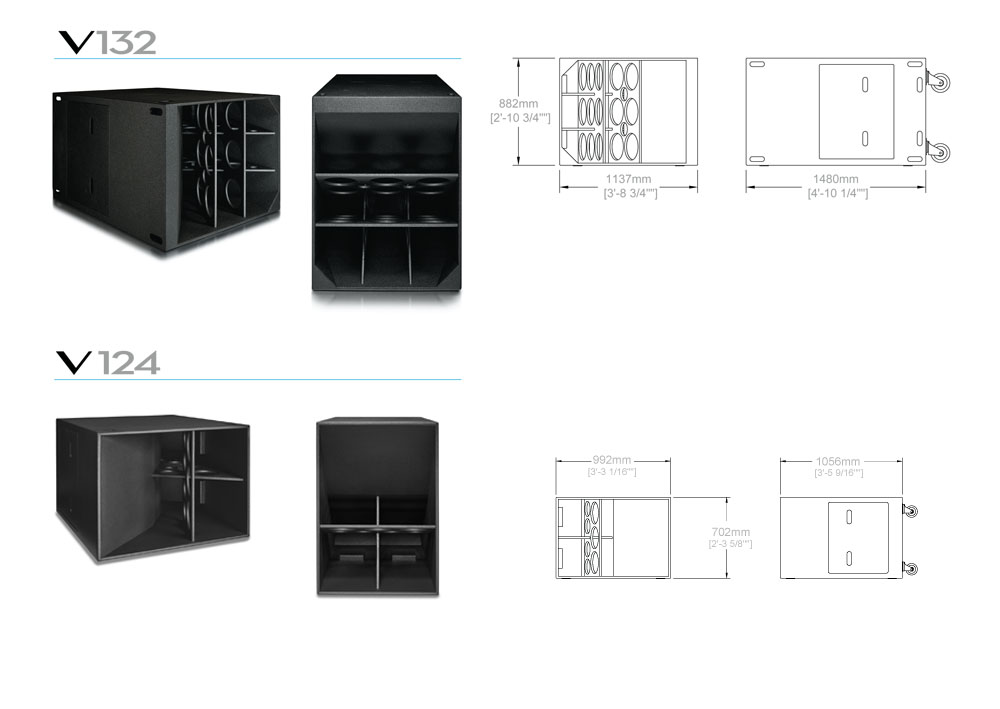 The V124 is a powerful and efficient bass enclosure that provides extended and defined low frequency bass performance. One 24inNeodymium driver gives frequencies down to 30Hz