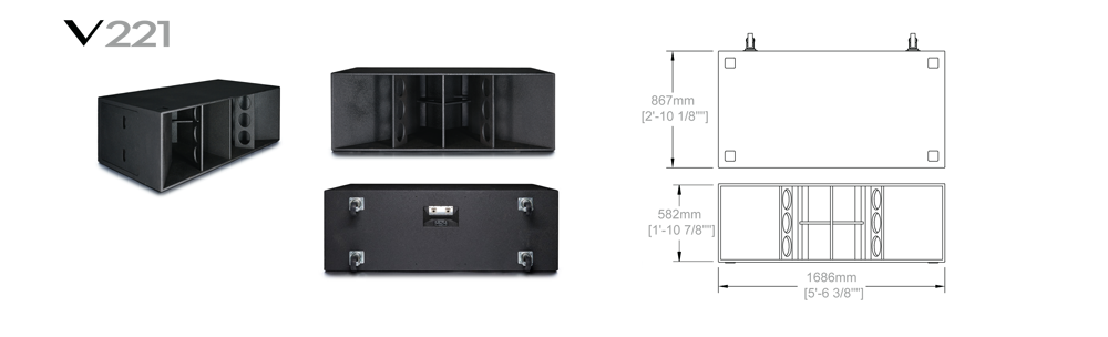 The V221 is an exceptionally efficient high-intensity bass enclosure that provides fast, accurate and dynamic bass. Two 21in Neodymium drivers give frequencies down to 40Hz