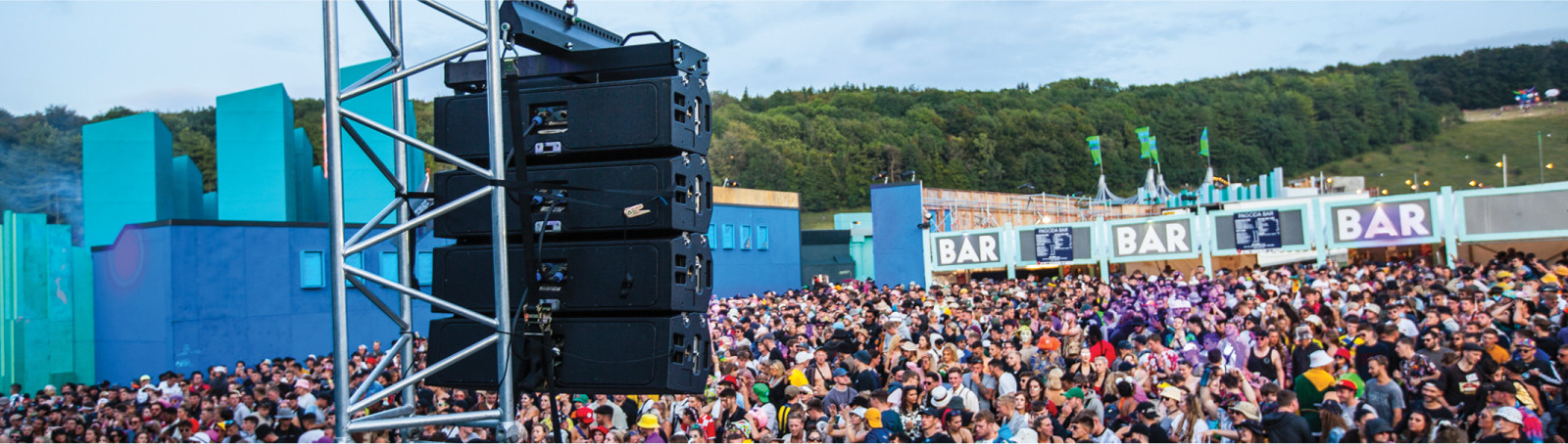 This enables cabinets to be transported and flown as straight columns, then tensioned into pre-set angles once the complete array is suspended.